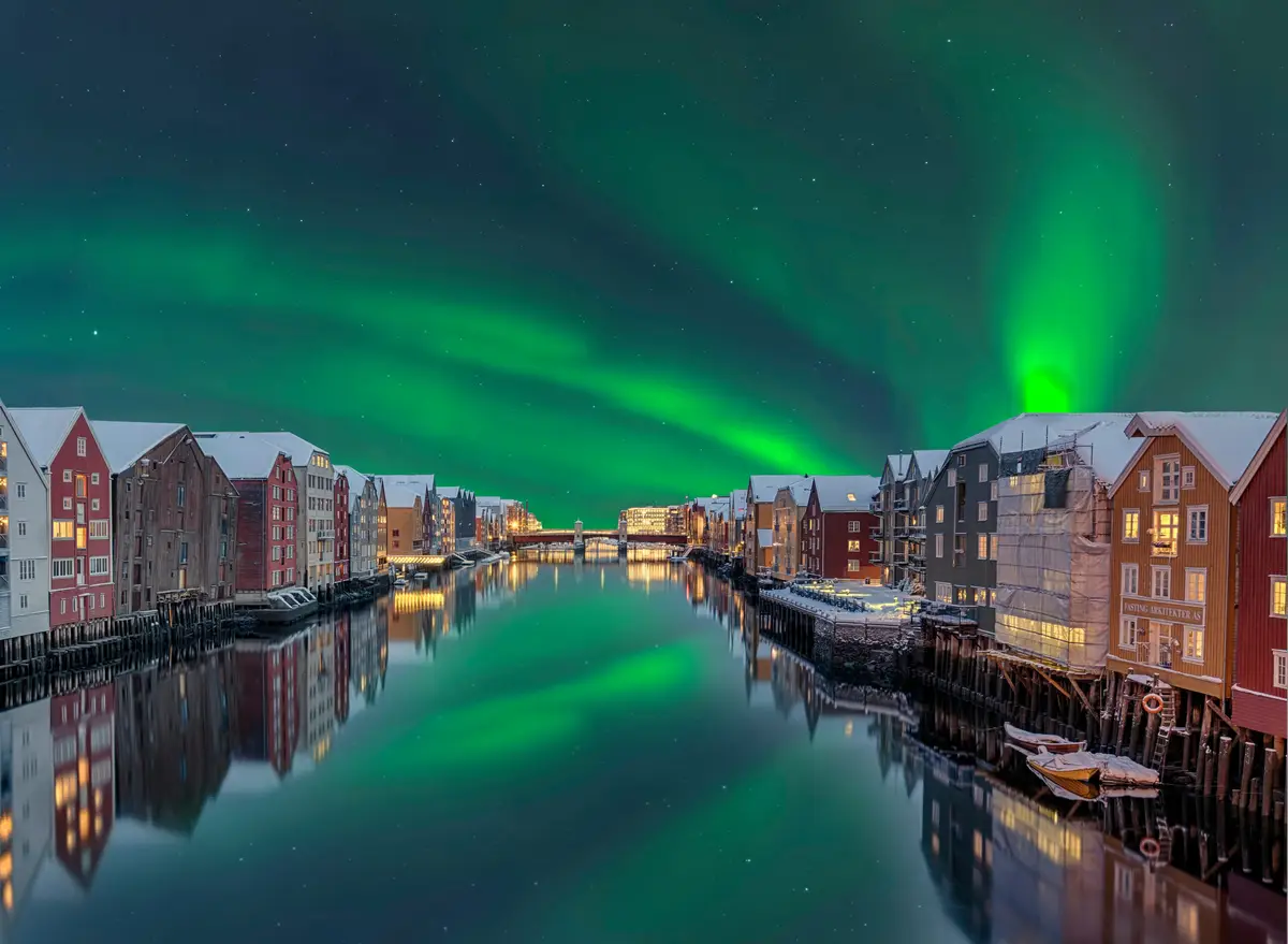 Continue with a guided stroll through the charming Bakklandet District, known for its colorful wooden houses and cobbled streets. Cross the Old Town Bridge, one of Trondheim’s most iconic landmarks, and make your way to Kristiansten Fortress, where your guide will share stories of the city’s defenses while you enjoy sweeping views across Trondheim.